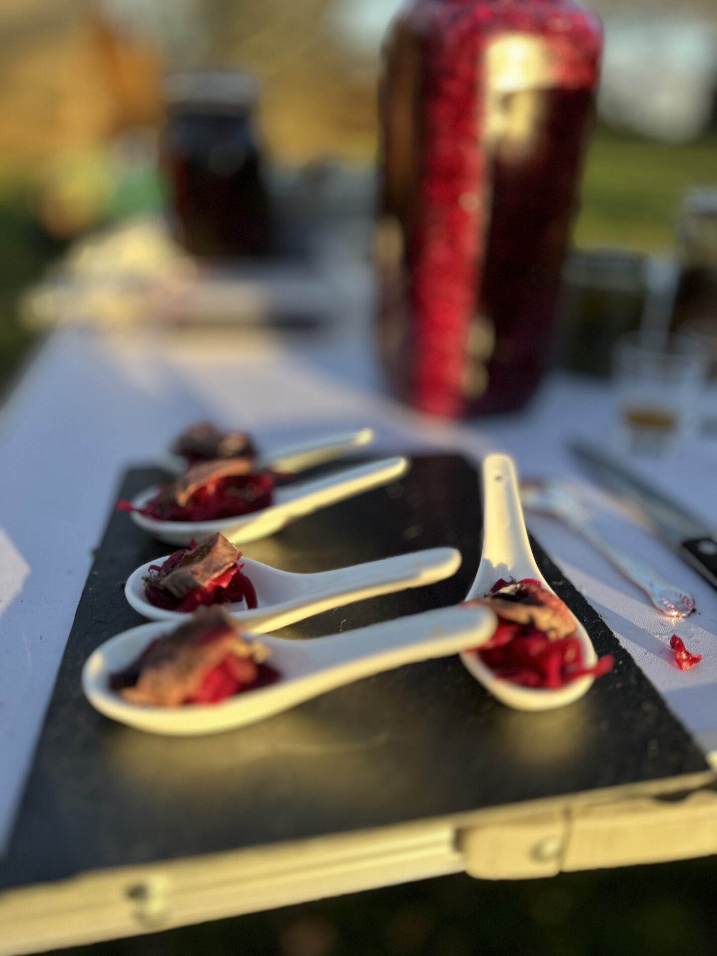 An interest in flora and fauna led Chef Alex in to wild cuisine. Whilst working for an ancestral skills school that taught game and prep, wild cooking, foraging and fermentation, these skills were put to the test when he took on a challenge to eat only wild foods for 3 months as a part of the Wildbiome Project.